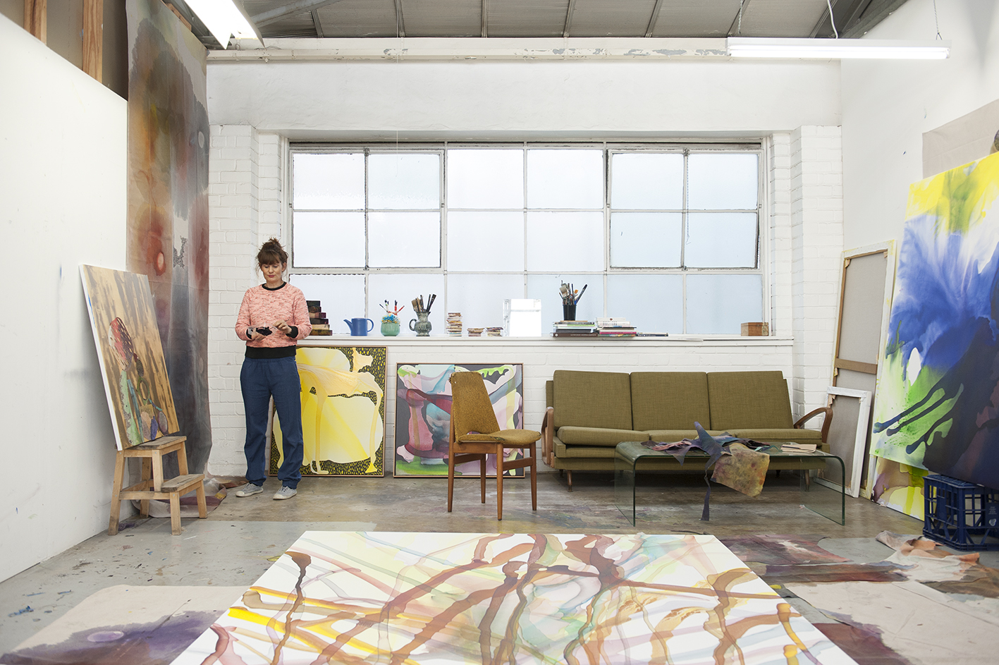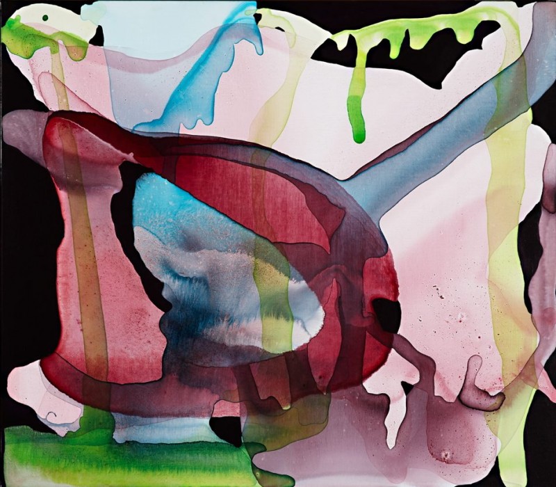 Travels through India and Spain as a young artist have also informed Merrett’s amorphous and organic arrangements, which are realised through the layering and pouring of water-based materials directly onto the canvas. No work is ever pre-planned; ‘It’s like magic when the unexpected starts to happen. I love it – it’s completely intoxicating. From start to completion, a work can take anywhere from three days to six months. Each work has its own personality and therefore takes its own time.’ Merrett studied painting abroad at the Circulo de Bellas Artes in Madrid, Spain, before completing a Bachelor of Fine Arts and Master of Arts at the College of Fine Arts, Sydney. She has recently been commissioned for various projects at the Victorian Tapestry Workshop for St Michaels Church, Melbourne, the Sofitel Hotel, Melbourne, and is represented in numerous private and public collections including the University of New South Wales, Sydney, the Bundanon Estate, Artbank, Melbourne, and the Macquarie Bank and the UBS collections.